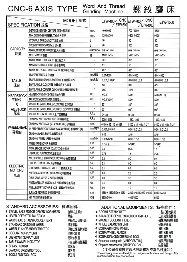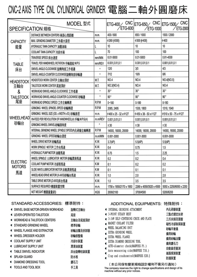Our line of CNC products includes grinders for cylinder interiors & exteriors (2n), universal cutter/tool grinders (4n), surface grinders for threads & linear guide-ways (4n/8n), and automated industrial machinery. Customers in Taiwan and abroad are welcome to contact us anytime to find out how our innovation, quality and services can work to your advantage.