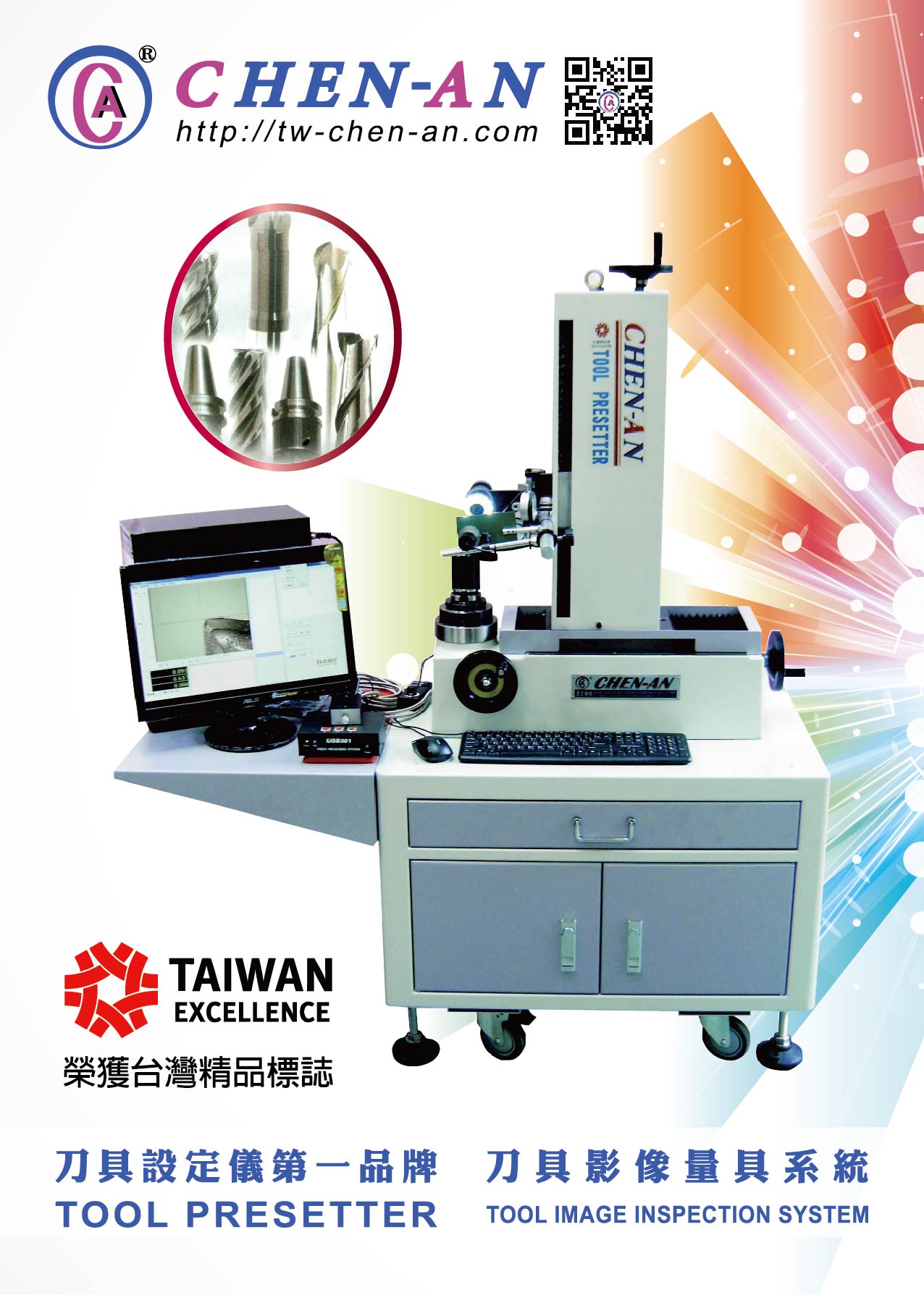 The Chen An Machine Industry company was established in 1986.In the beginning' we manufactured only the machine parts, tool holders and other machine accessories for the CNC Machine center . Then, We produce the precision Tool Presetter ,2D Measuring Equipment and 3D coordinate Measuring Machine.Due to the high quality and long term durability ,Our products obtained the Symbol Of Excellence Taiwan Products qualified by the Ministry of Economic Affair of Taiwan in 1996. Now ,Chen An ia a leading company for producing the Precision Measuring Equipment ,especially in Tool Presetter ,both in domestic and foreign .Chan-An have had a good reputation.