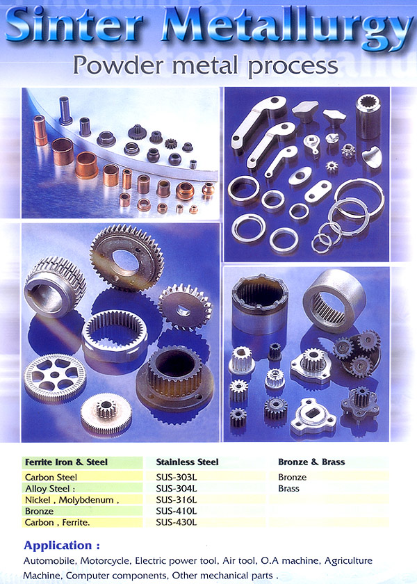 Plastic MoldsPressing MoldsDie Casting MoldsCasting MoldsForging MoldsPowder MetallurgicalSteel Alloys & PartsPeripheral Equipment Mold&dieMold Processing SubcontractingAudio & VideoOffice MachineryMachinery & HardwareMotor AccessoriesSand MoldingHot ForgingCold ForgingJig & FixtureMachine CentersWire CuttingE.D.M.EngravingGrindingFormingPressingMachiningSurface TreatmentWeldingInspection & MeasurementTrial Services