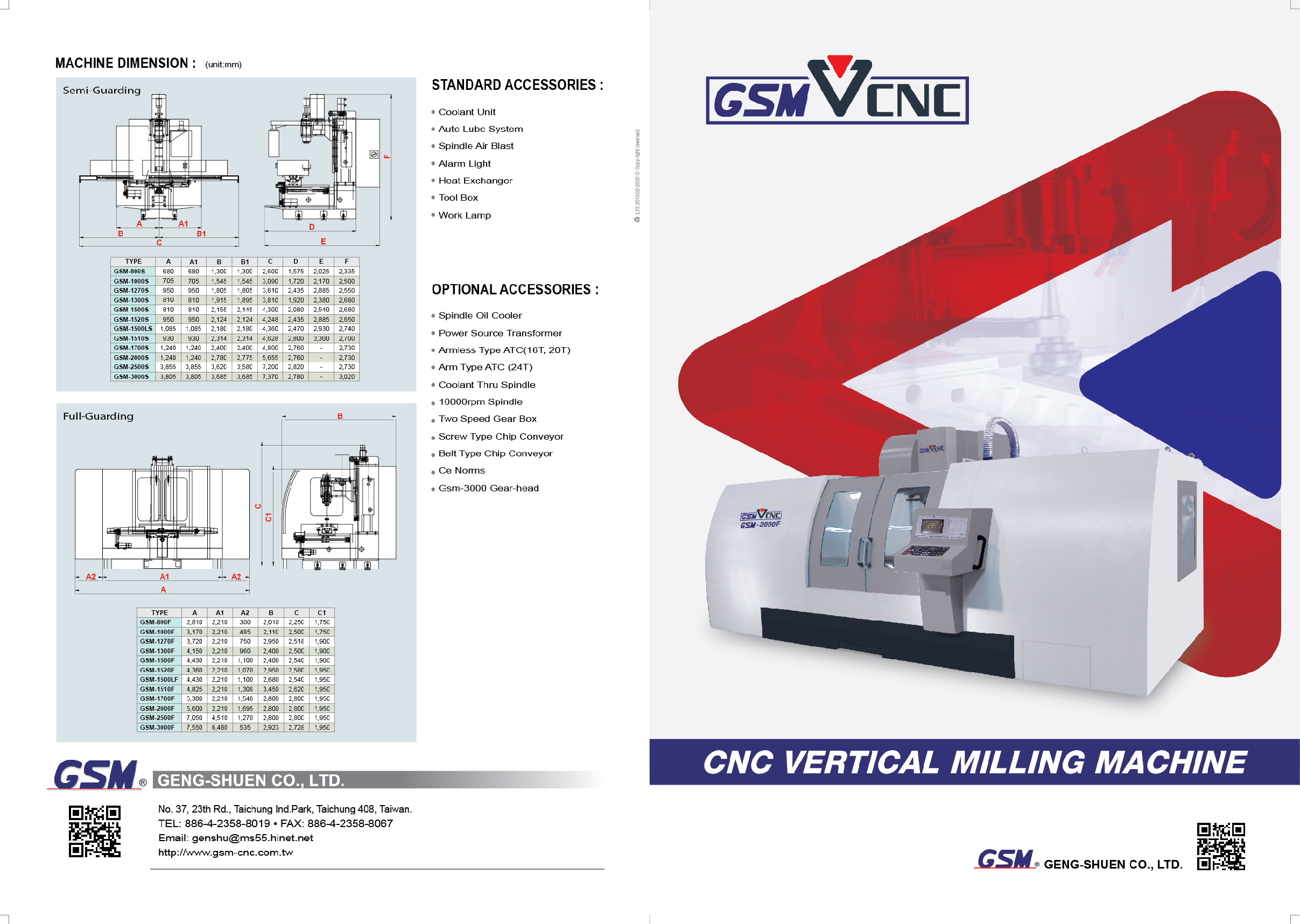 依序產品有GSM-800,1000,1270,1300,1500,1500L, 1510, 1520, 1700 , 2000,2500及 3000 , 共計 12 種型號 , 陸續研發中, 本公司有堅強的開發團隊,並與歐美各大CNC廠技術合作開發新機種,一方面籍以提昇技術層次,進入高價位CNC 工具機市埸, 一方面也成功地拓展了全球的工具機市埸,目前本公司仍以每年25%穩健的成長中,其中以歐美市埸為主,顯示本公司的產品己為歐美高規格的工具機市埸廣為接受。
