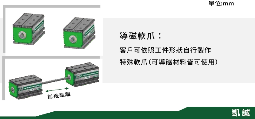 2.替換式導磁軟爪可做多功能之工件夾持加工。